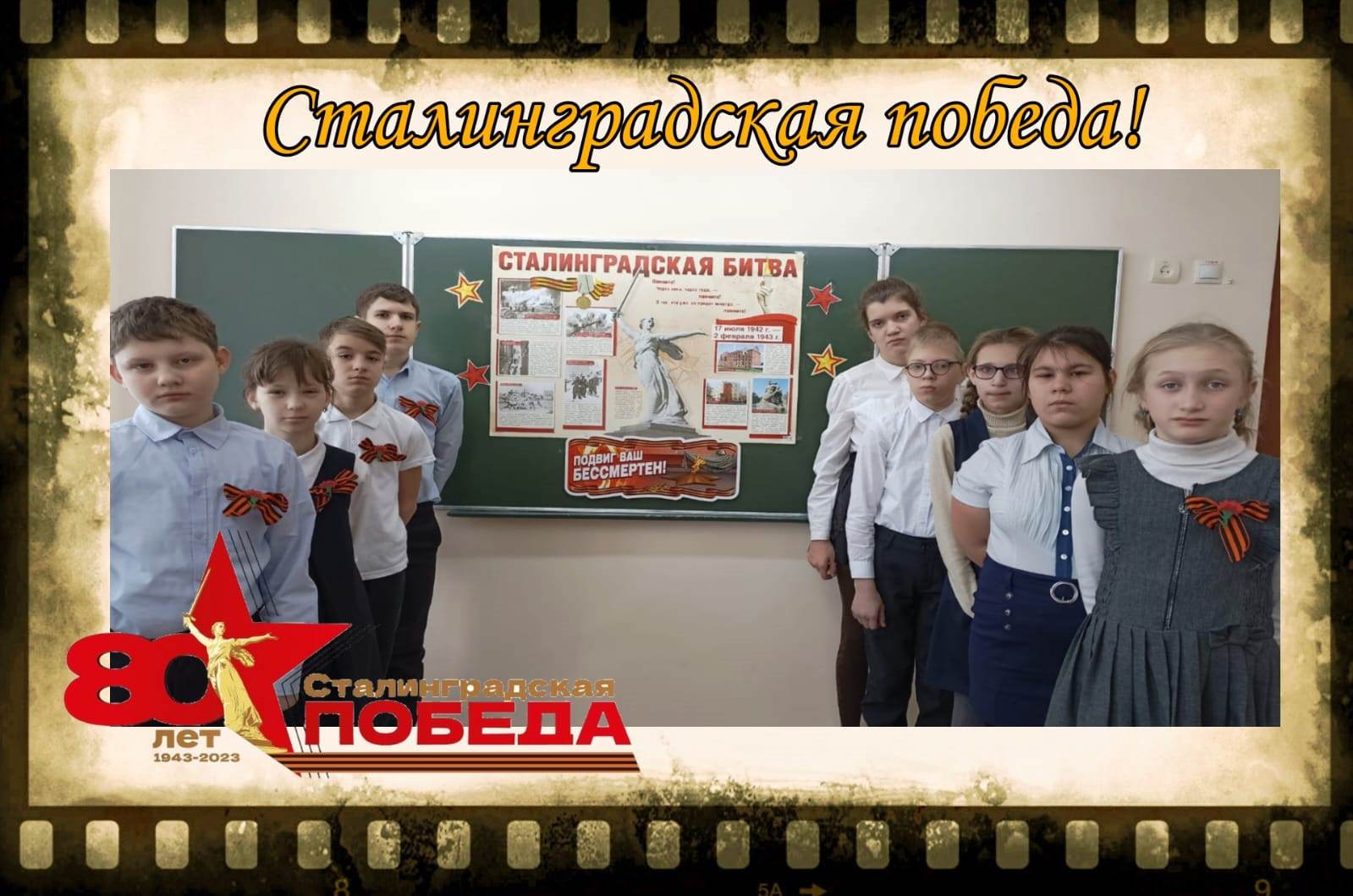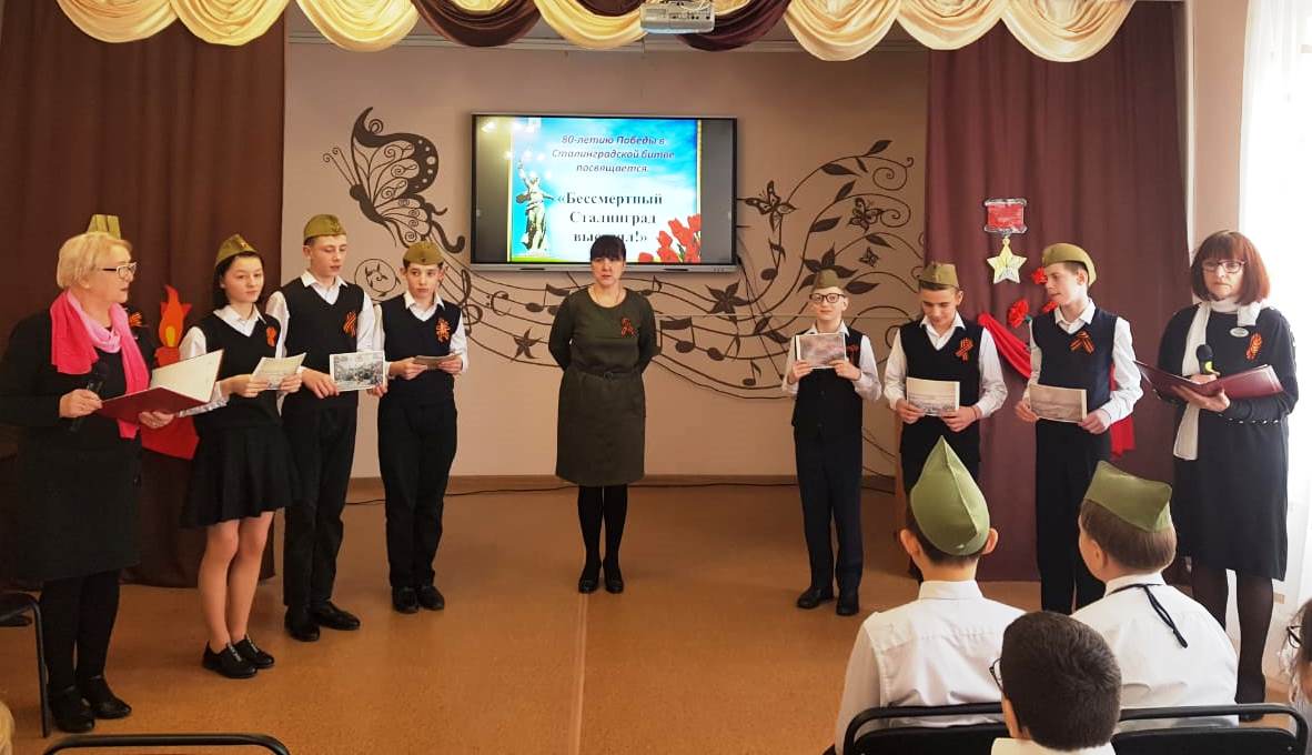 Учащиеся и педагоги 9А и 7А классов в честь празднования 80-летия Победы в Сталинградской битве подготовили и провели мероприятие, посвященное Подвигу Героев Сталинграда!