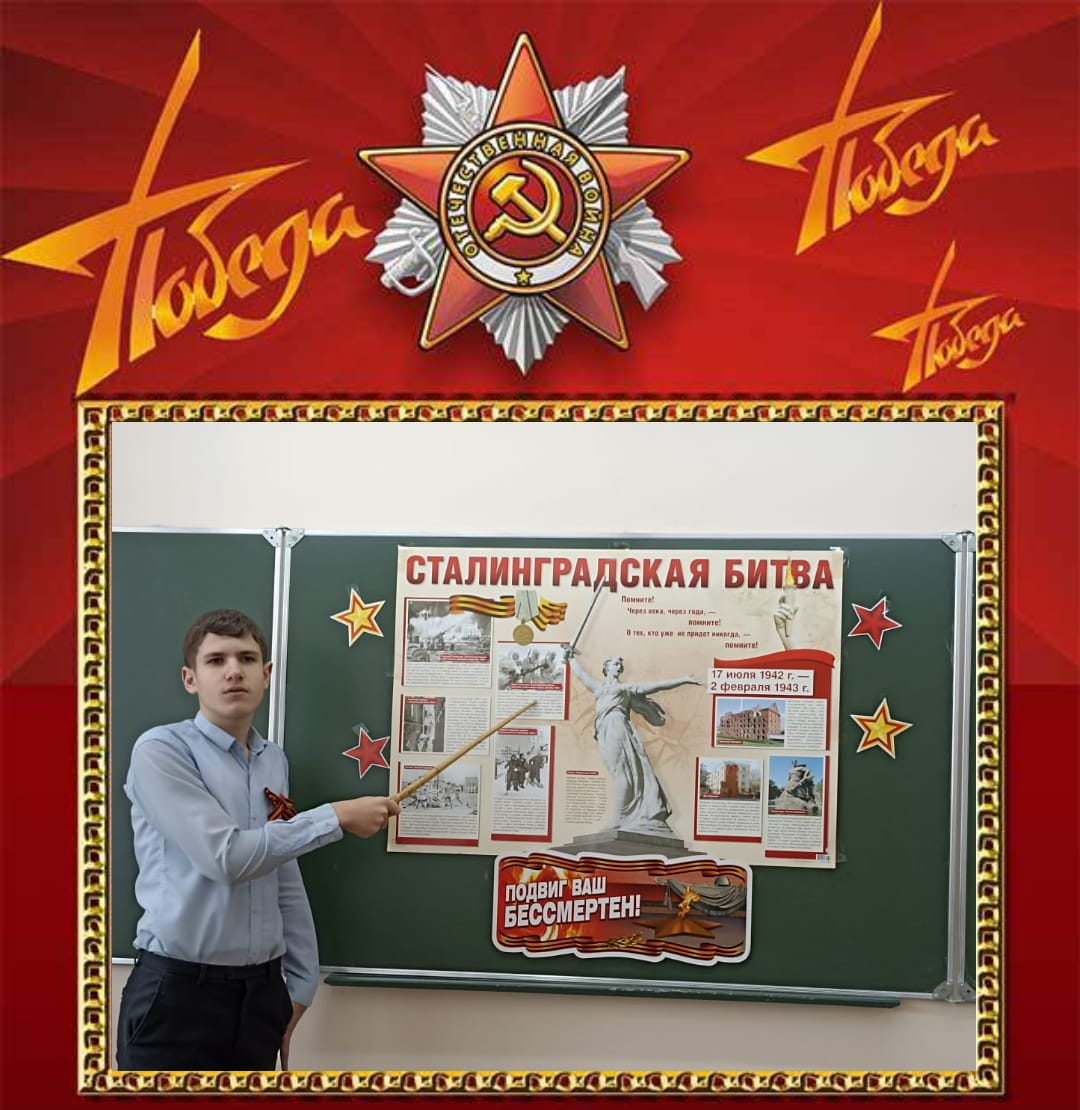 Выпускники нашего ОУ: Великородный Дмитрий, Цветкова Любовь, Бережнова Елена самостоятельно подготовили видео-проект в честь 80-летия Победы в Сталинградской битве!