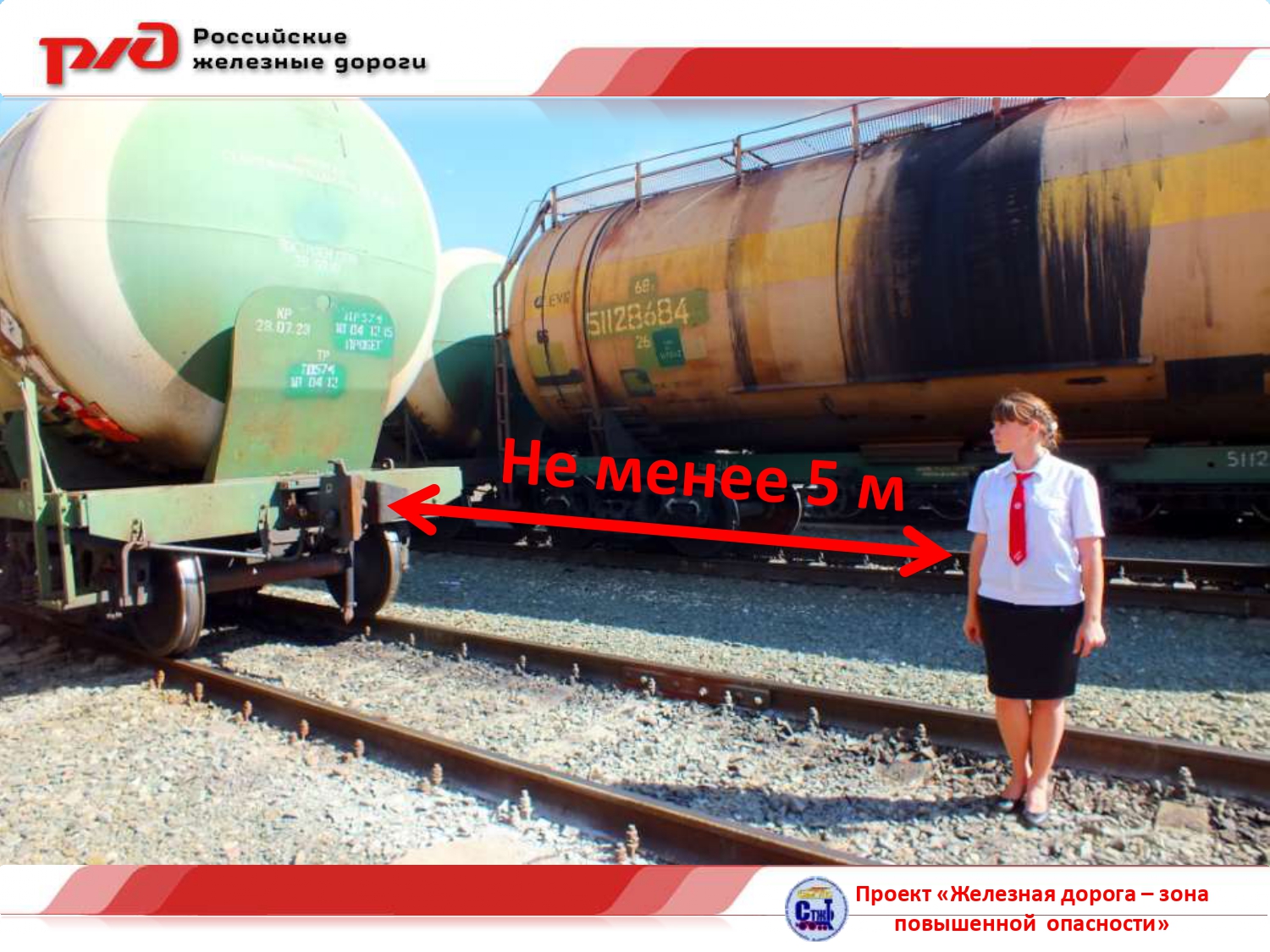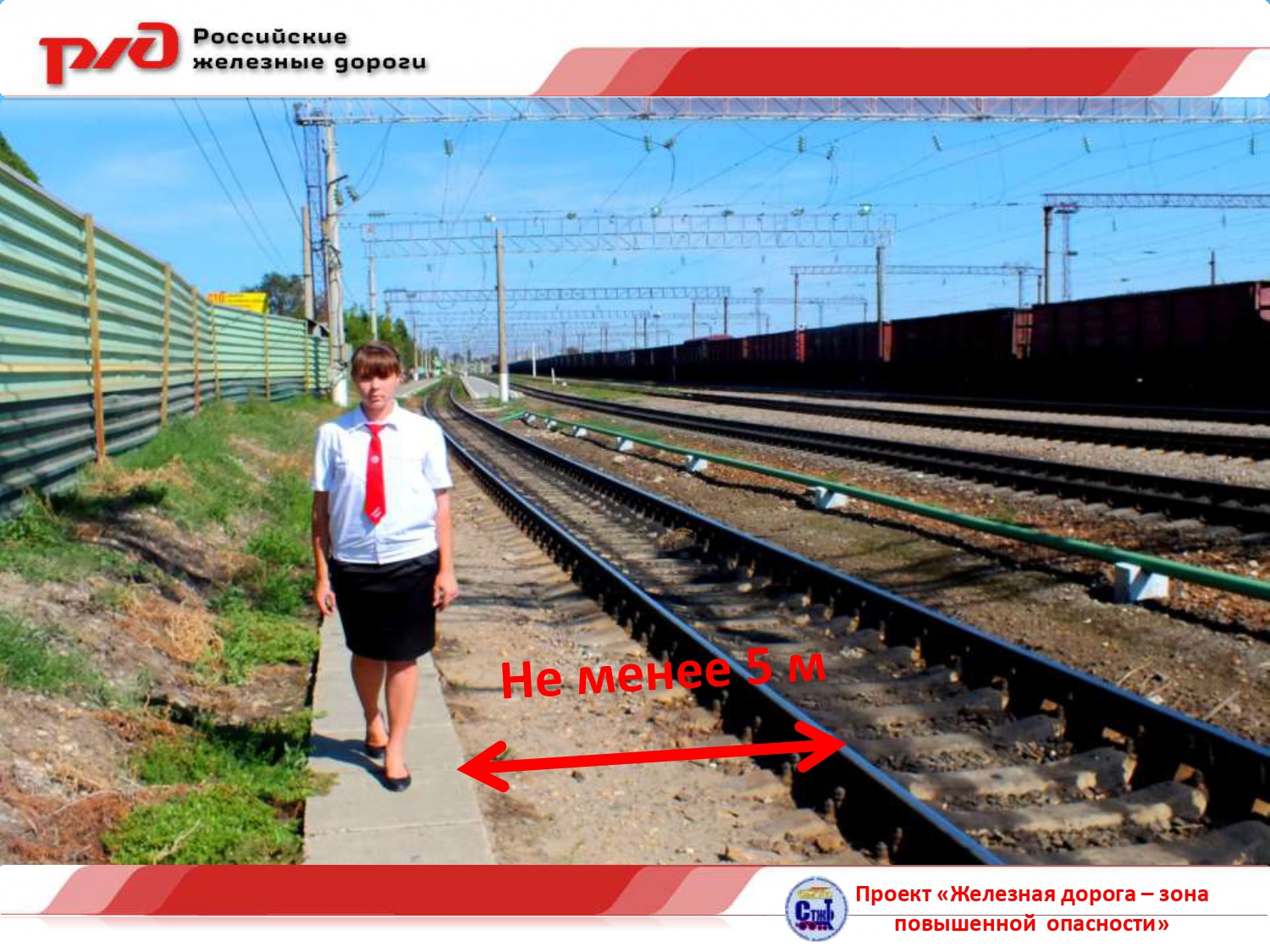 - при движении вдоль железнодорожного пути не подходите ближе 5 метров к крайнему рельсу;