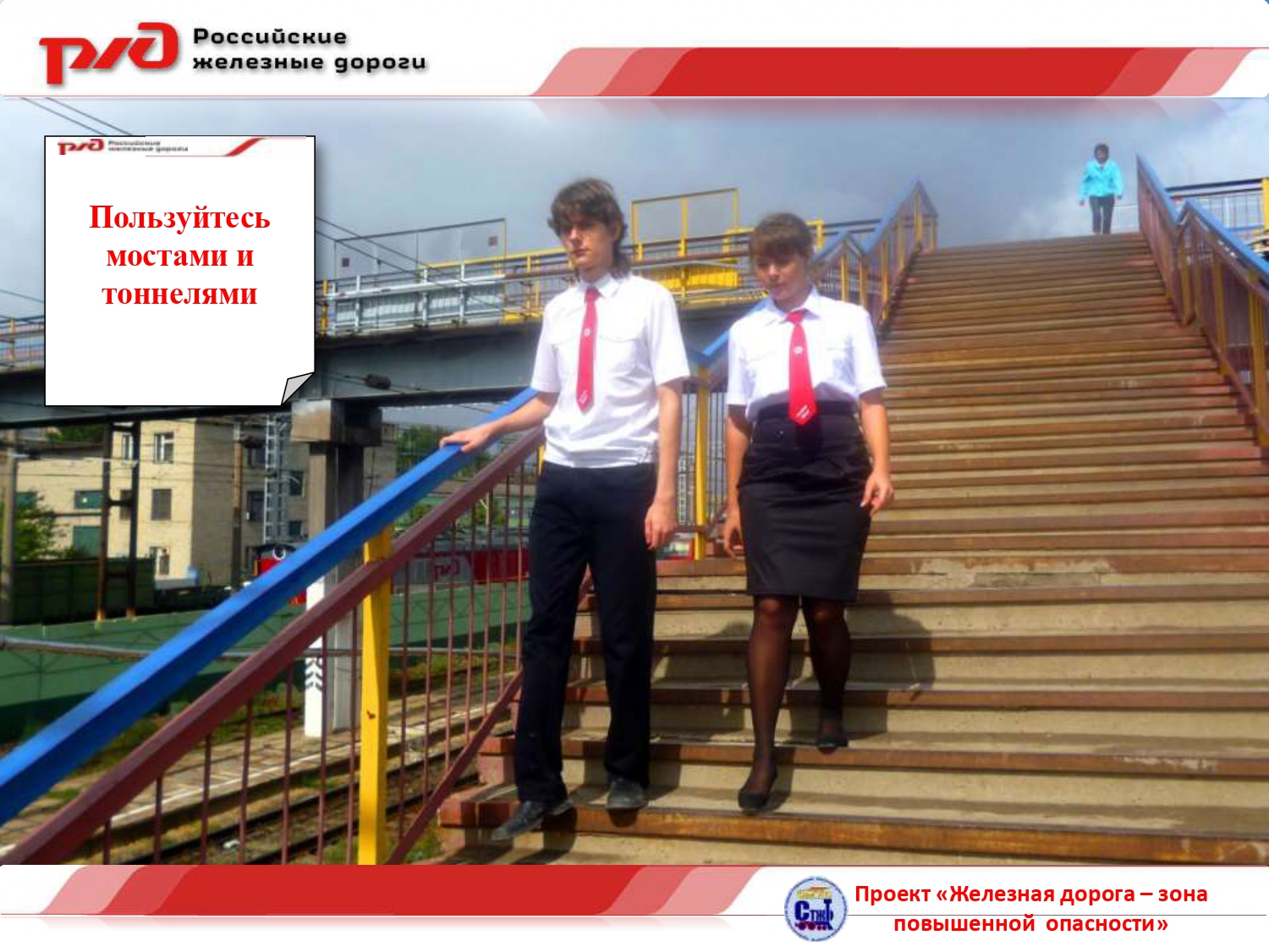 переходите железнодорожные пути только в установленных местах, пользуйтесь при этом пешеходными мостками, тоннелями, переходами, а там где их нет;