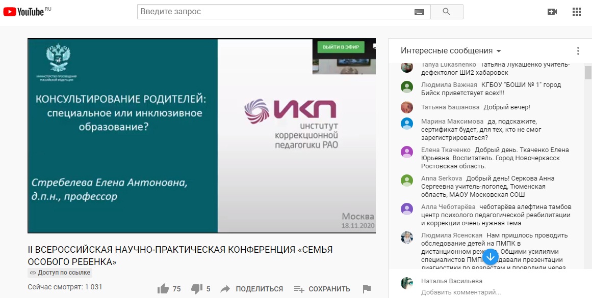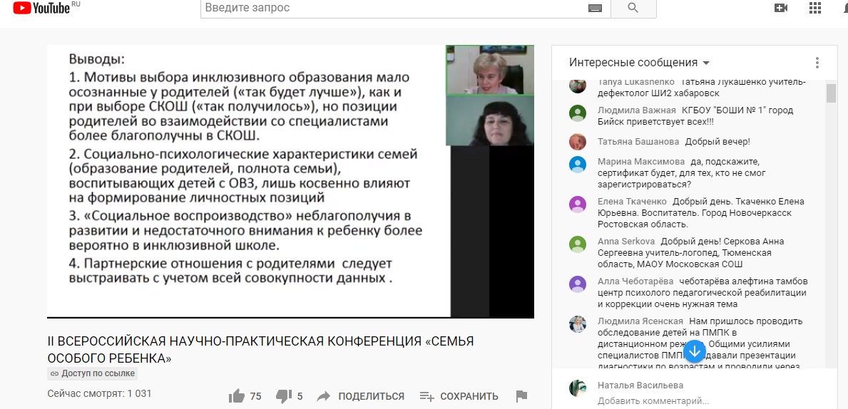 19 ноября 2020 г. педагогический коллектив нашего учреждения принимал участие во II ВСЕРОССИЙСКОЙ НАУЧНО-ПРАКТИЧЕСКОЙ КОНФЕРЕНЦИИ "СЕМЬЯ ОСОБОГО РЕБЕНКА". Работа конференции была направлена на проведение конструктивного анализа возможностей и условий реализации адаптированных основных образовательных программ (АООП) при обучении различных категорий детей с ОВЗ с учетом их общих и специфических образовательных потребностей. Участники общей секции «Вопросы разработки и реализации Адаптированной основной общеобразовательной программы основного общего образования обучающихся с ОВЗ», среди которых ведущие специалисты ФГБНУ «ИКП РАО», крупнейших педагогических вузов России, обсудили вопросы, связанные с особенностями обучения детей разных нозологических групп, организации коррекционной работы при реализации АООП ООО, а также специфику разработки и реализации АООП ООО по каждой из групп.