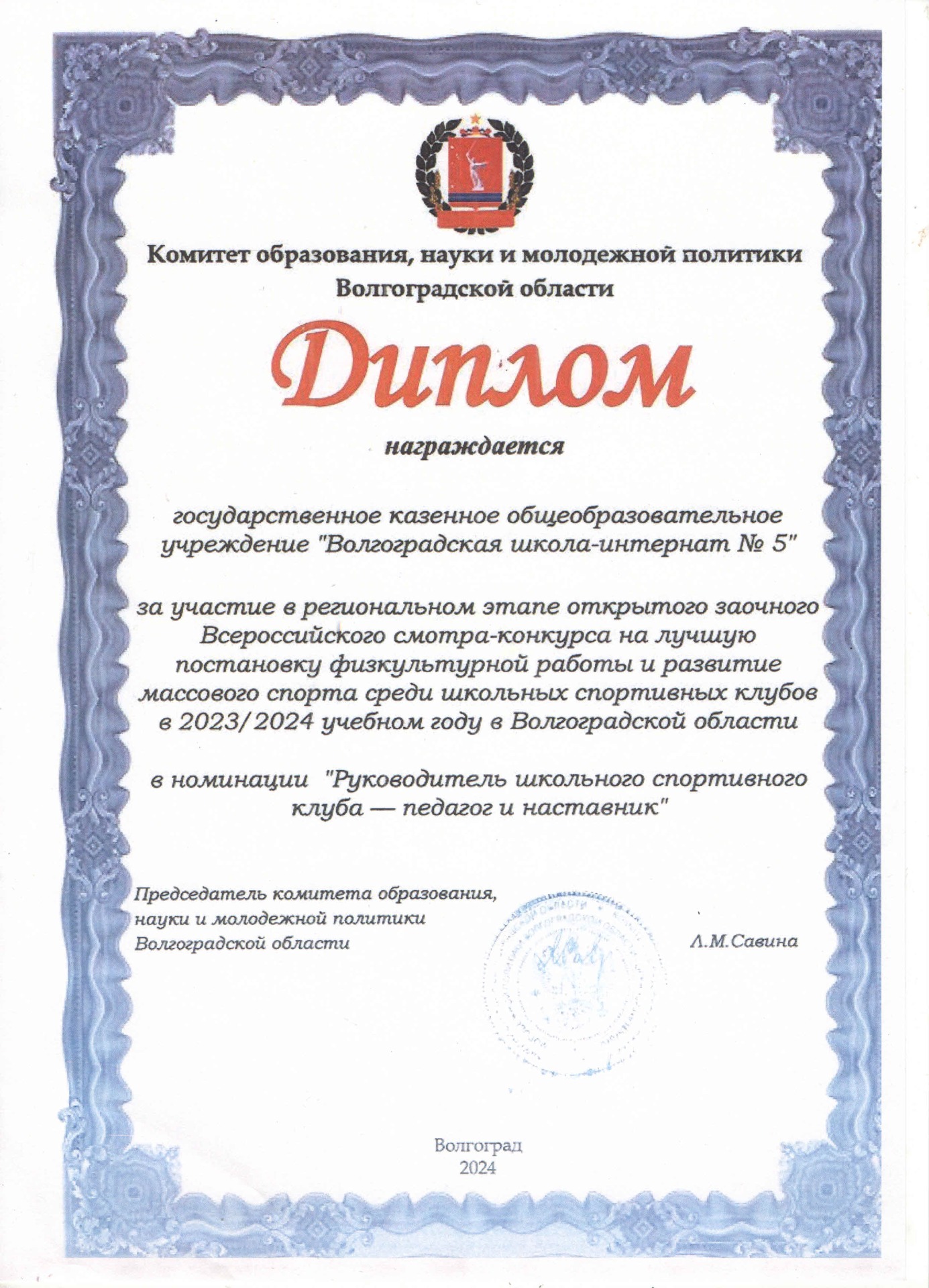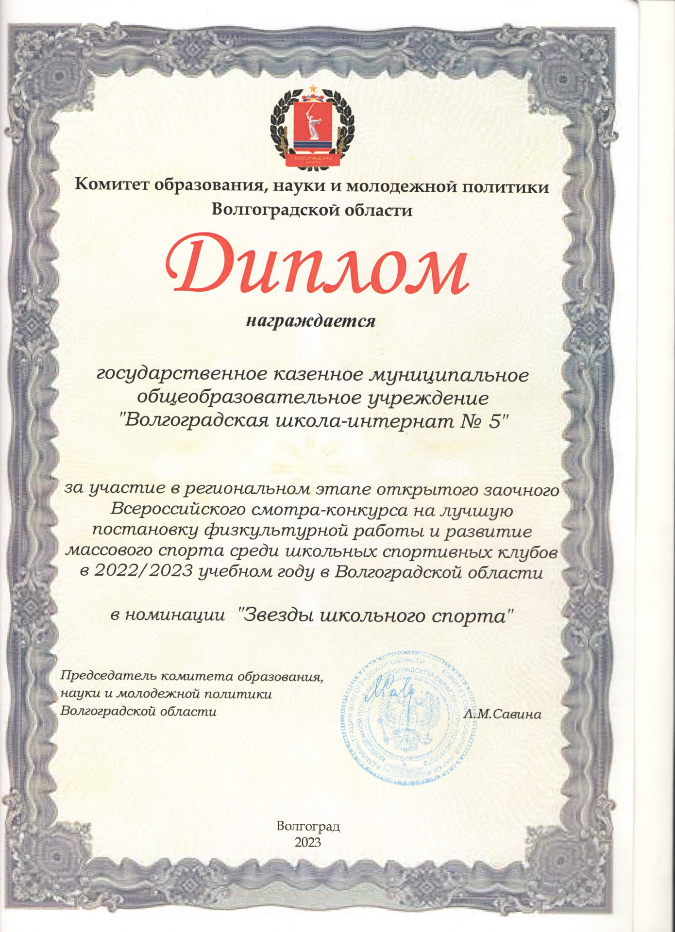 смотра-конкурса на лучшую постановку физкультурной работы и развитие массового спорта среди школьных спортивных клубов в 2022/2023 учебном году в Волгоградской области