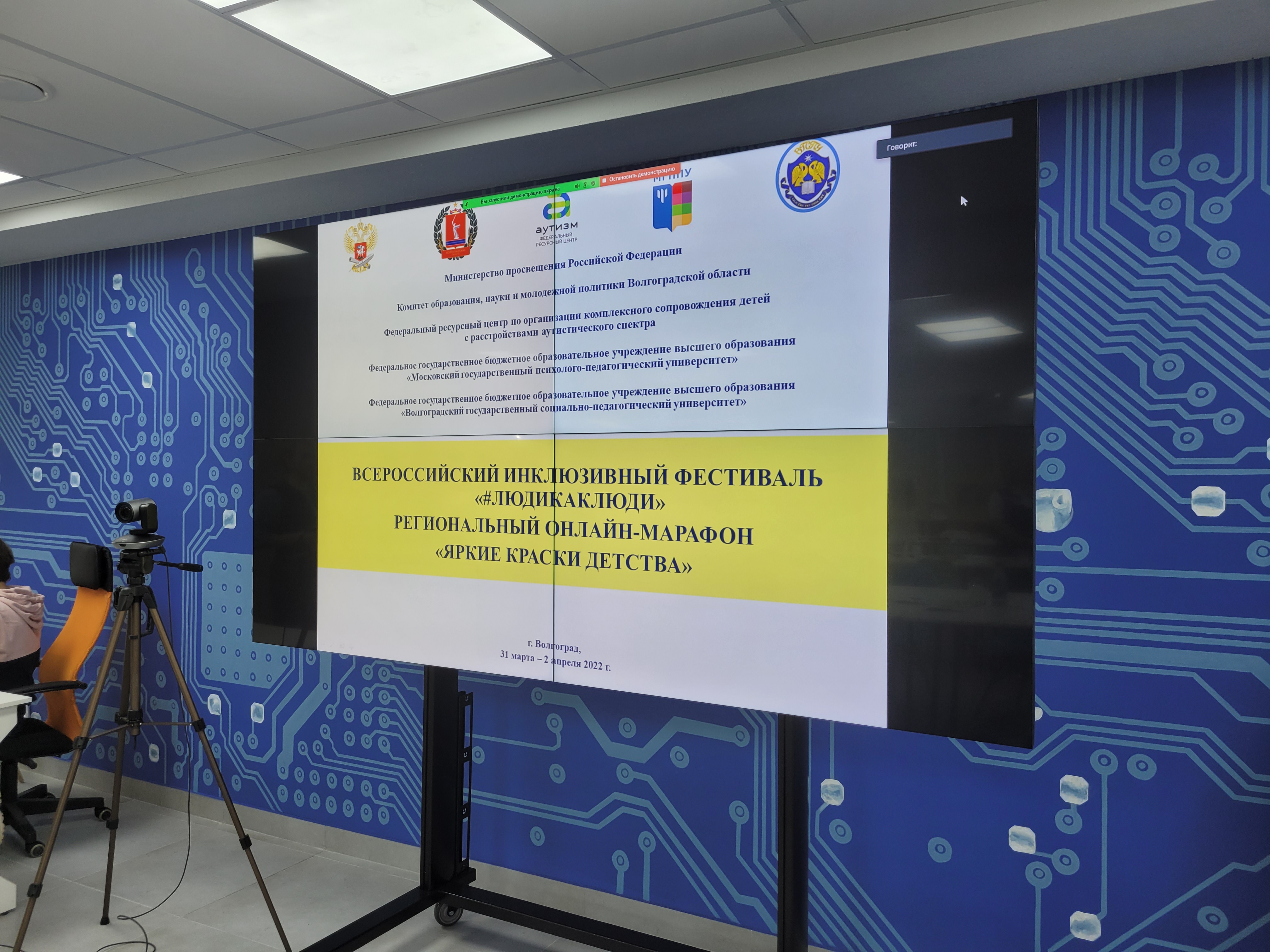 31 марта 2022 на базе ВГСПУ прошел РЕГИОНАЛЬНЫЙ ОНЛАЙН-МАРАФОН "Яркие кРАСки детства" в рамках проведения ВСЕРОССИЙСКОГО ИНКЛЮЗИВНОГО ФЕСТИВАЛЯ "#ЛЮДИКАКЛЮДИ".