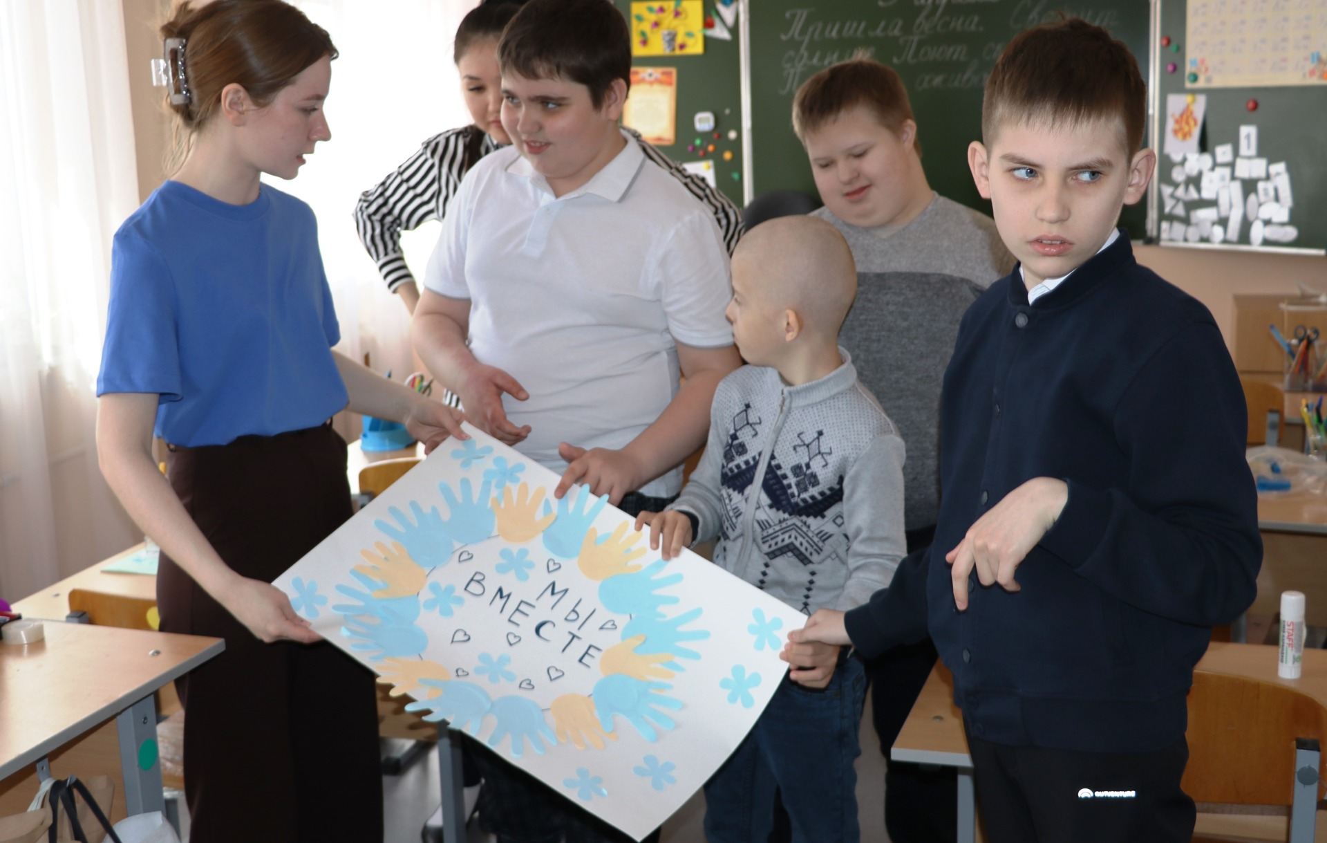 С целью привлечения внимания общественности к проблеме аутизма в России ученики совместно с педагогами распространили тематические листовки среди жителей района.
