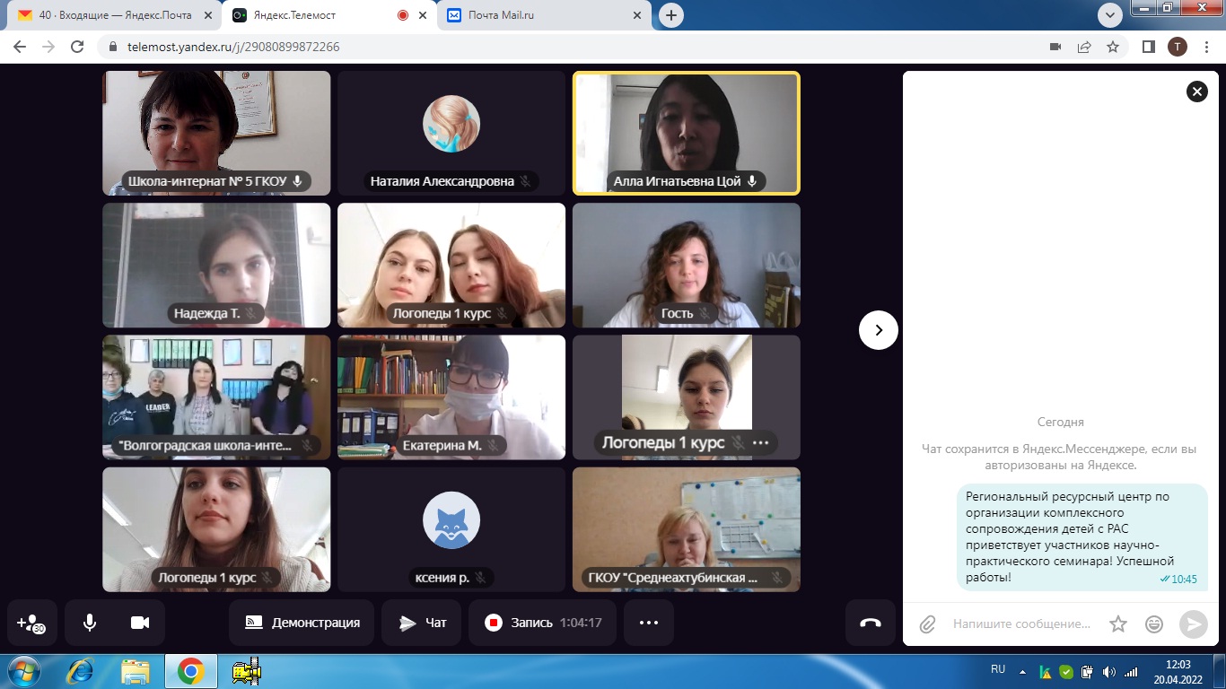 20 апреля 2022 года на базе ГКОУ "Волгоградская школа-интернат №5" состоялся региональный научно-практический семинар (в режиме онлайн).