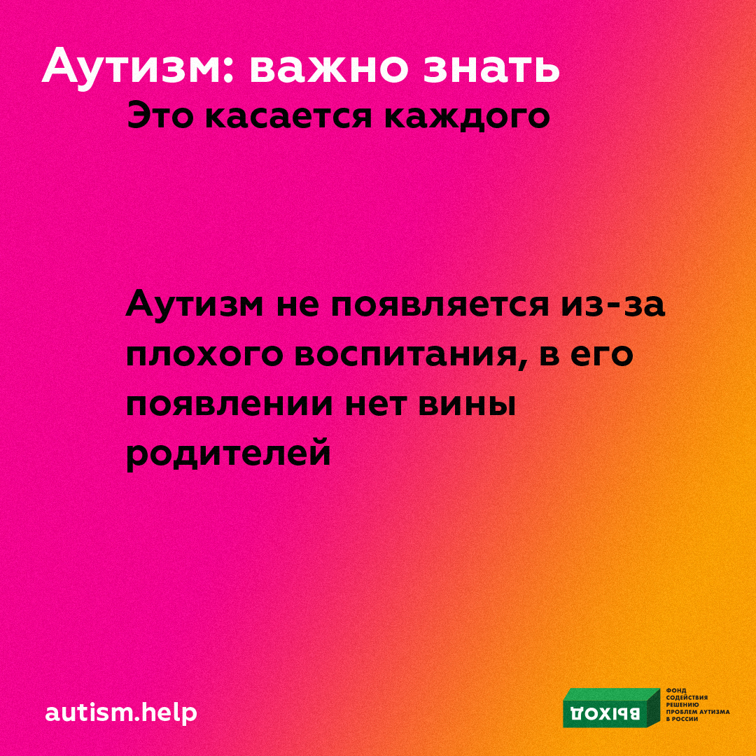 К апрелю – всемирному месяцу распространения информации об аутизме – мы запустили кампанию «Аутизм. Понимать и Принимать» с целью преодоления стигматизации людей с аутизмом и их близкого окружения, а также информирования об этой особенности развития. Чтобы развеять мифы об этом состоянии мы подготовили специальный ролик и ряд материалов.
