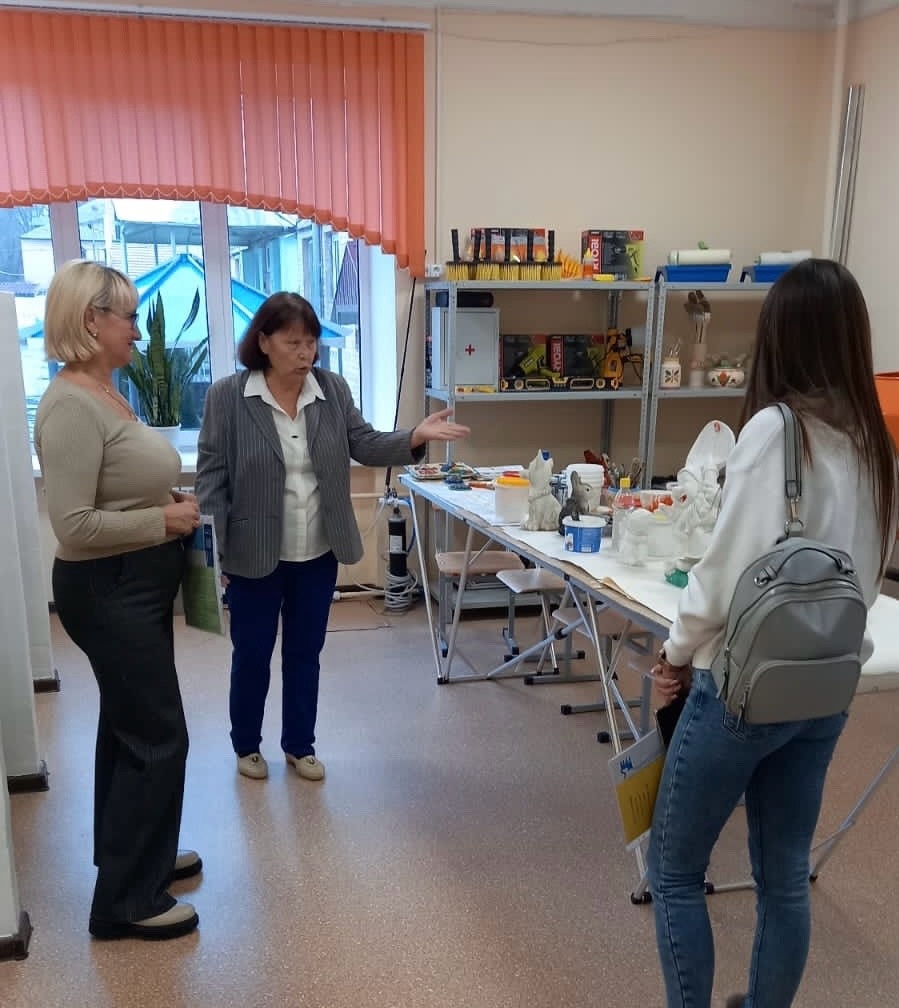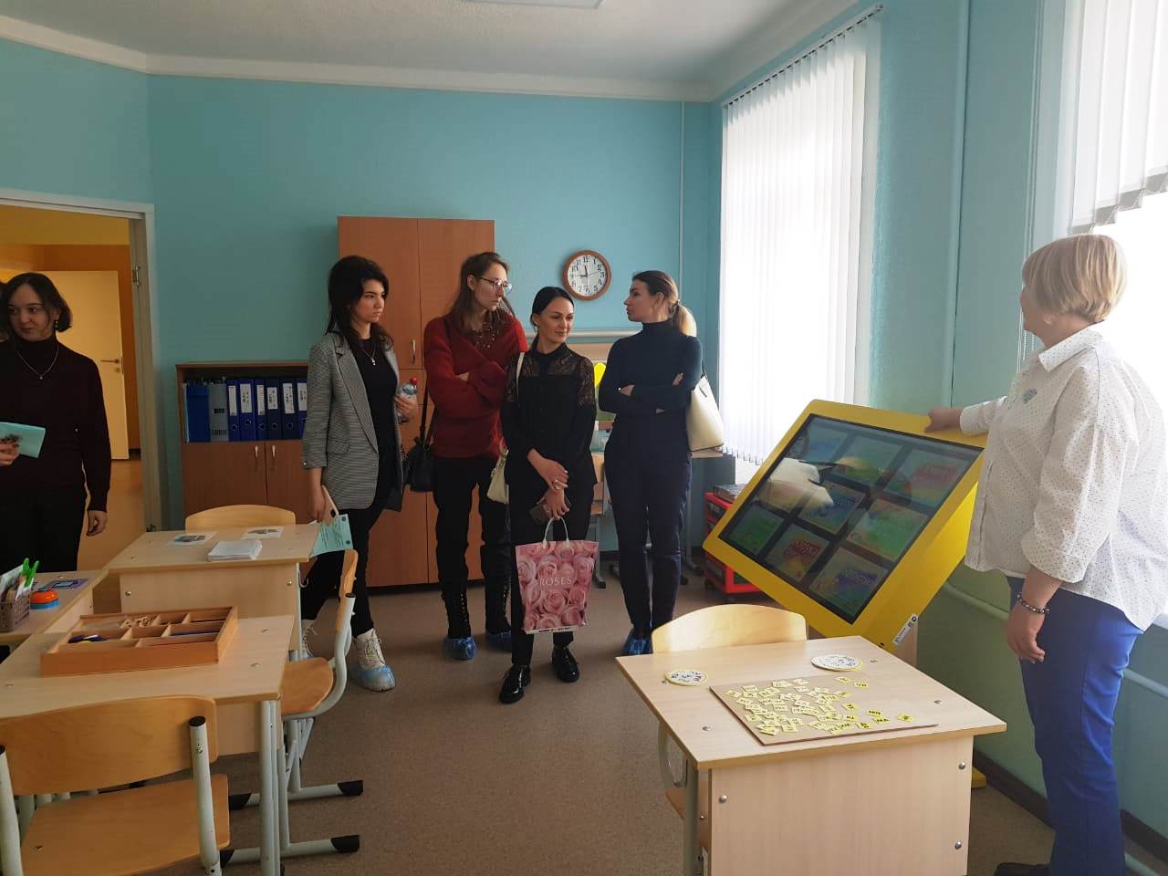 В ходе встречи была организована обзорная экскурсия по общеобразовательному учреждению. Особое внимание будущих специалистов привлекло обновленное образовательное пространство - центр психолого-педагогического сопровождения (кабинеты учителя-логопеда, учителя-дефектолога, педагога-психолога), кабинет робототехники, мастерские трудового обучения, Студия ремесел (студия декоративно-прикладного искусства, гончарная студия, лаборатория по цветоводству), которые оснащены современным интерактивным оборудованием в рамках реализации мероприятий федерального проекта «Современная школа» национального проекта «Образование», направленного на поддержку образования обучающихся с ограниченными возможностями здоровья посредством обновления материально-технической базы общеобразовательных организаций.