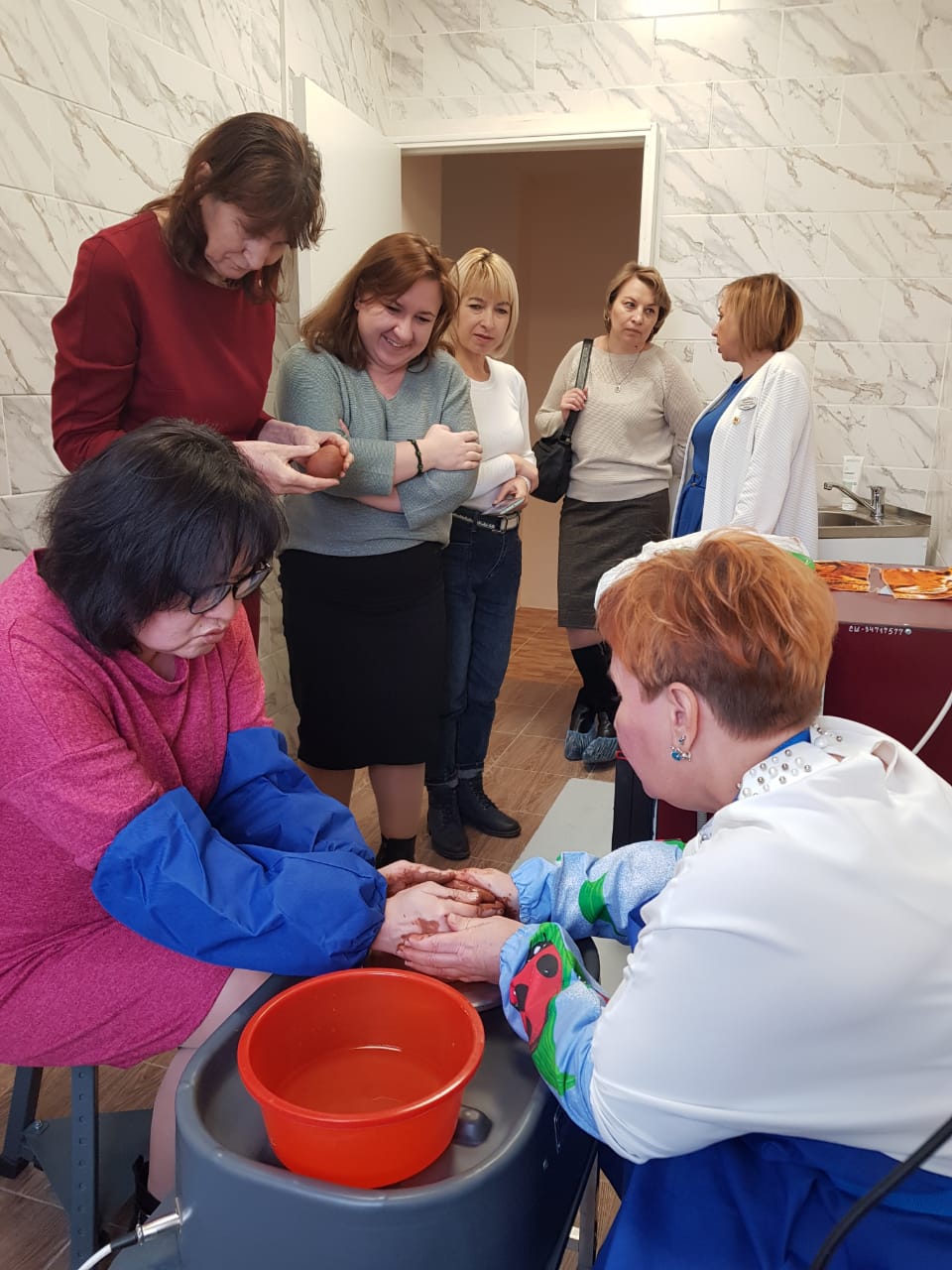 Для участников семинара-практикума была организована обзорная экскурсия по школе-интернату, в рамках которой они посетили центр психолого-педагогического сопровождения учреждения, учебные кабинеты, мастерские, оснащенные новым оборудованием в рамках проекта «Доброшкола».