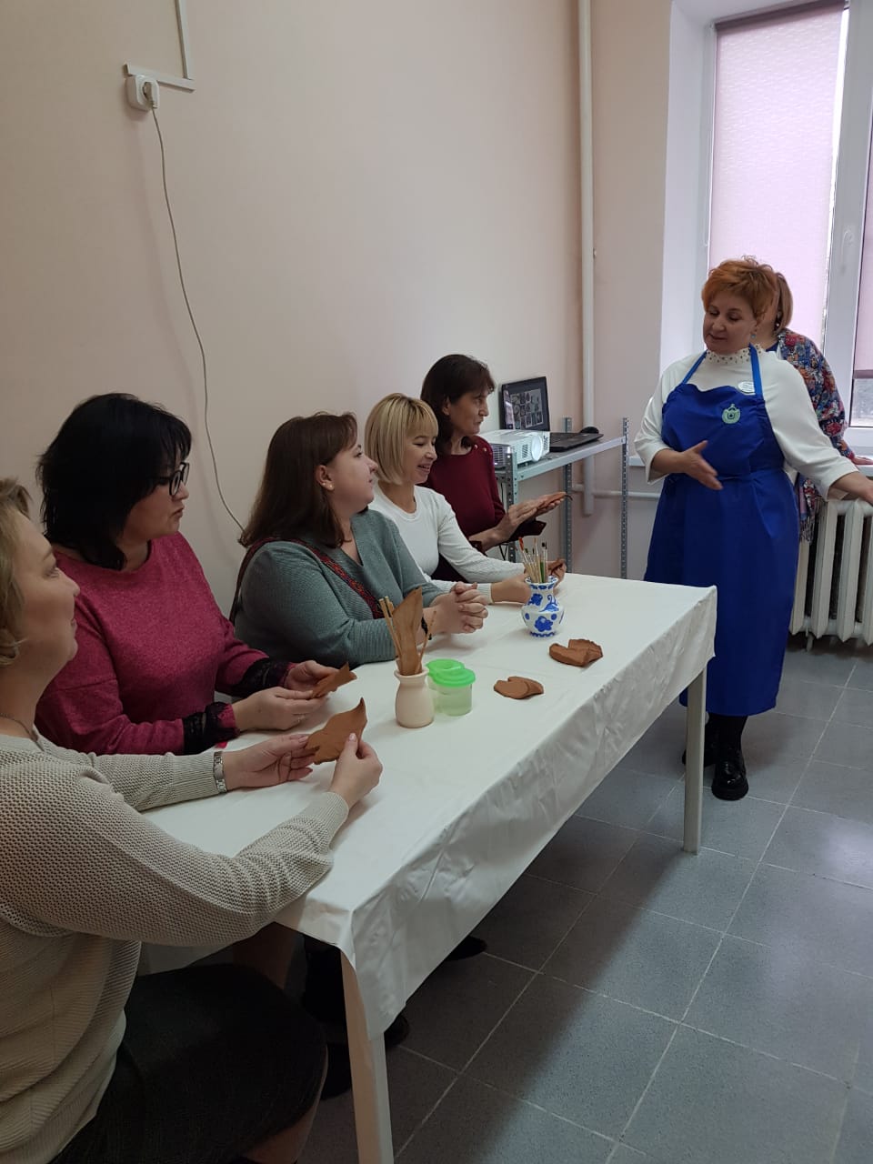 Было представлено теоретическое обоснование темы в форме презентации. Педагоги, присутствующие на мастера- классе, смогли поработать с глиной на гончарном круге, изготовить сувениры.